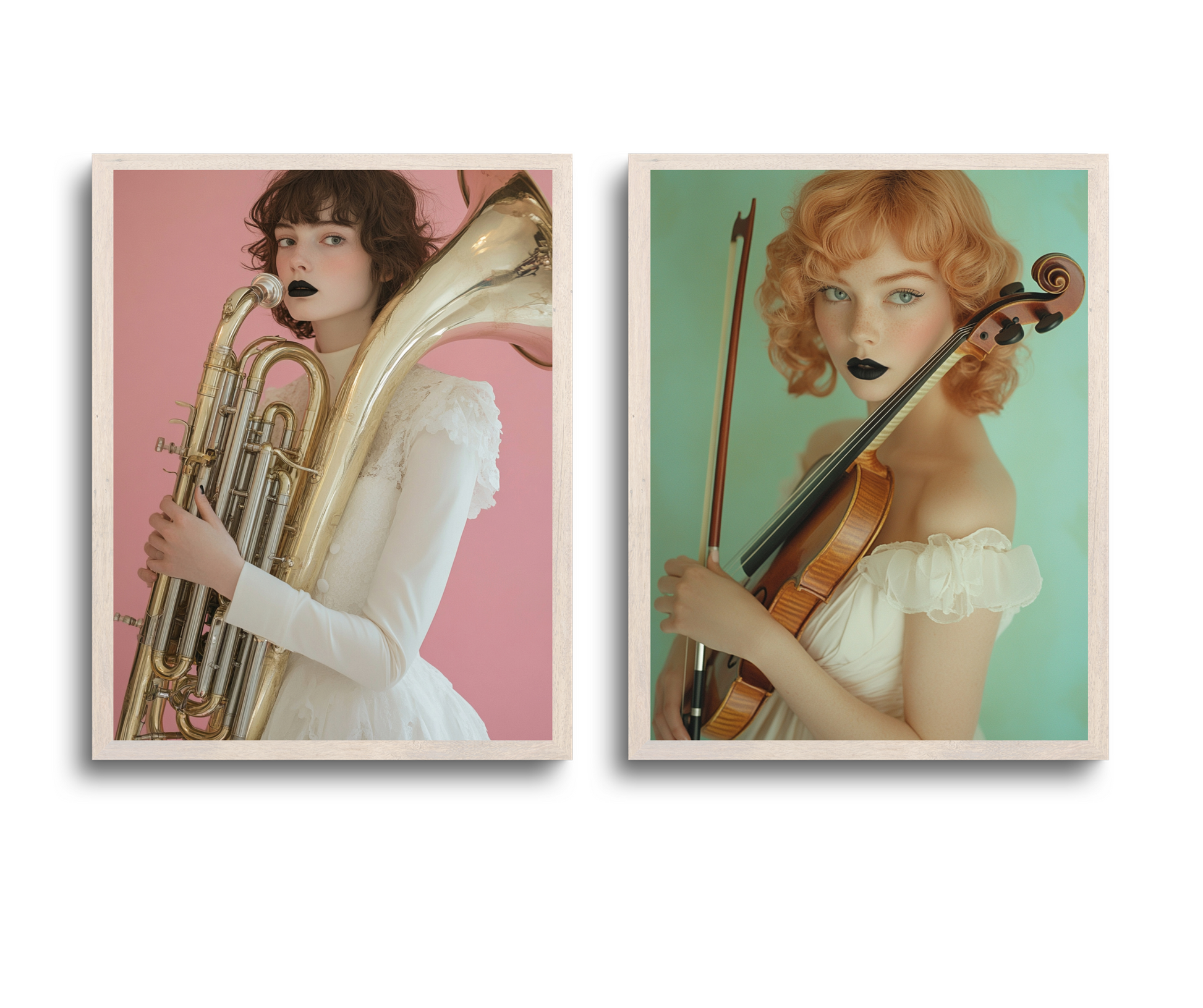 ***¿Amante de la música y el arte con actitud? Este pack de láminas “Black Lips Symphony” une elegancia y personalidad: dos figuras femeninas de labios negros, una con trombón y otra con violín.
