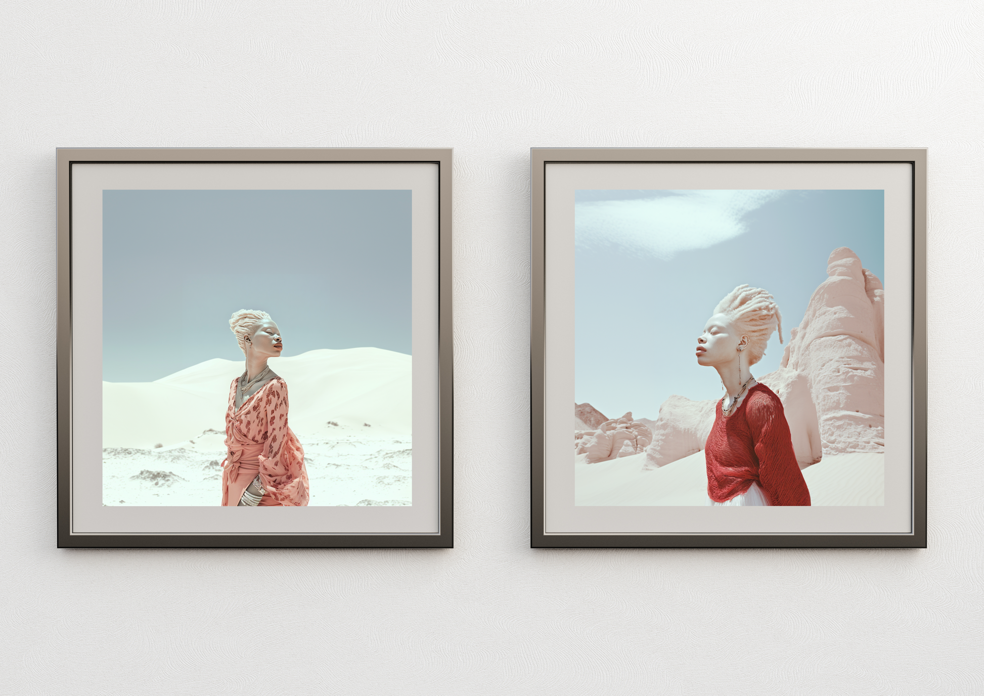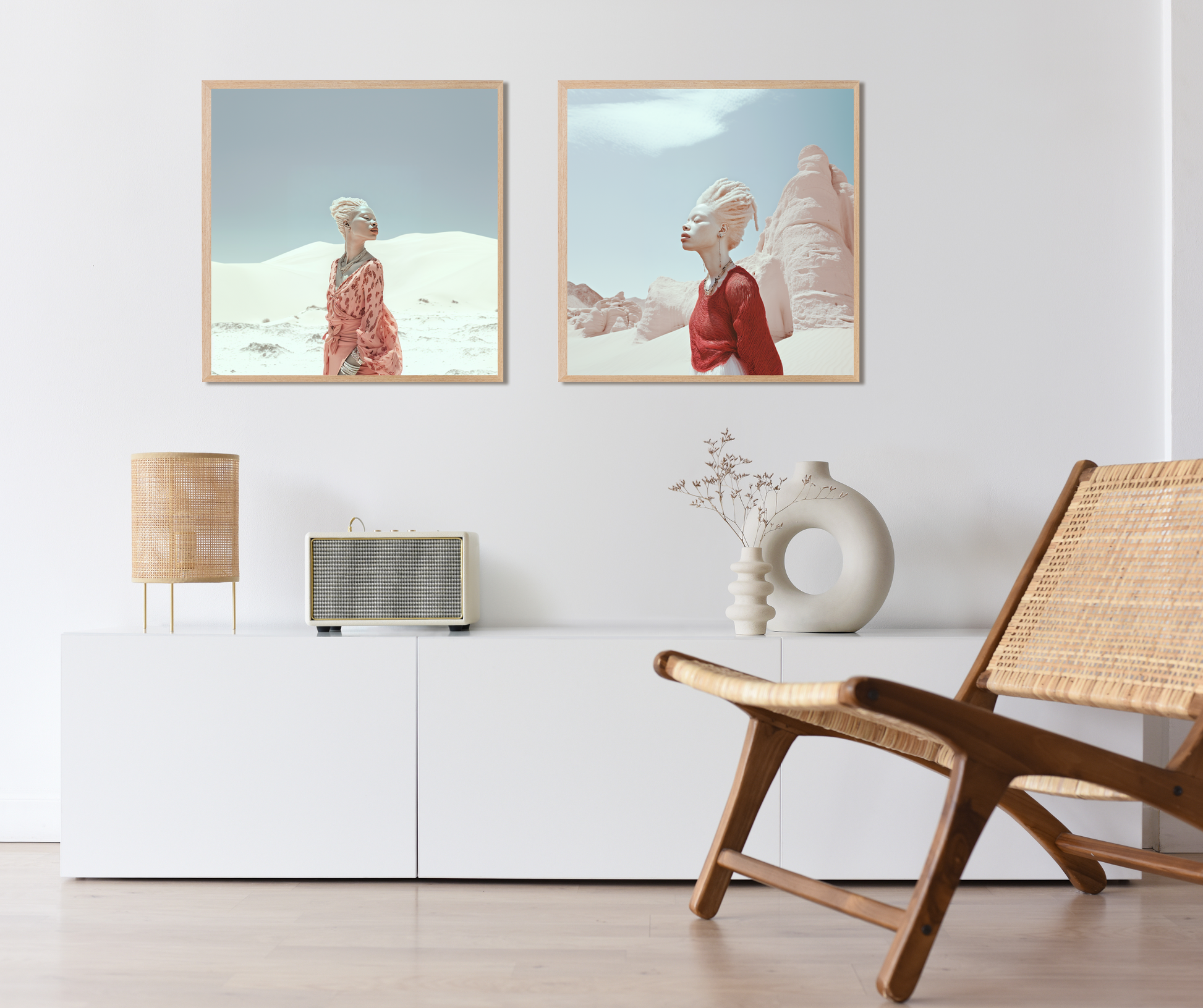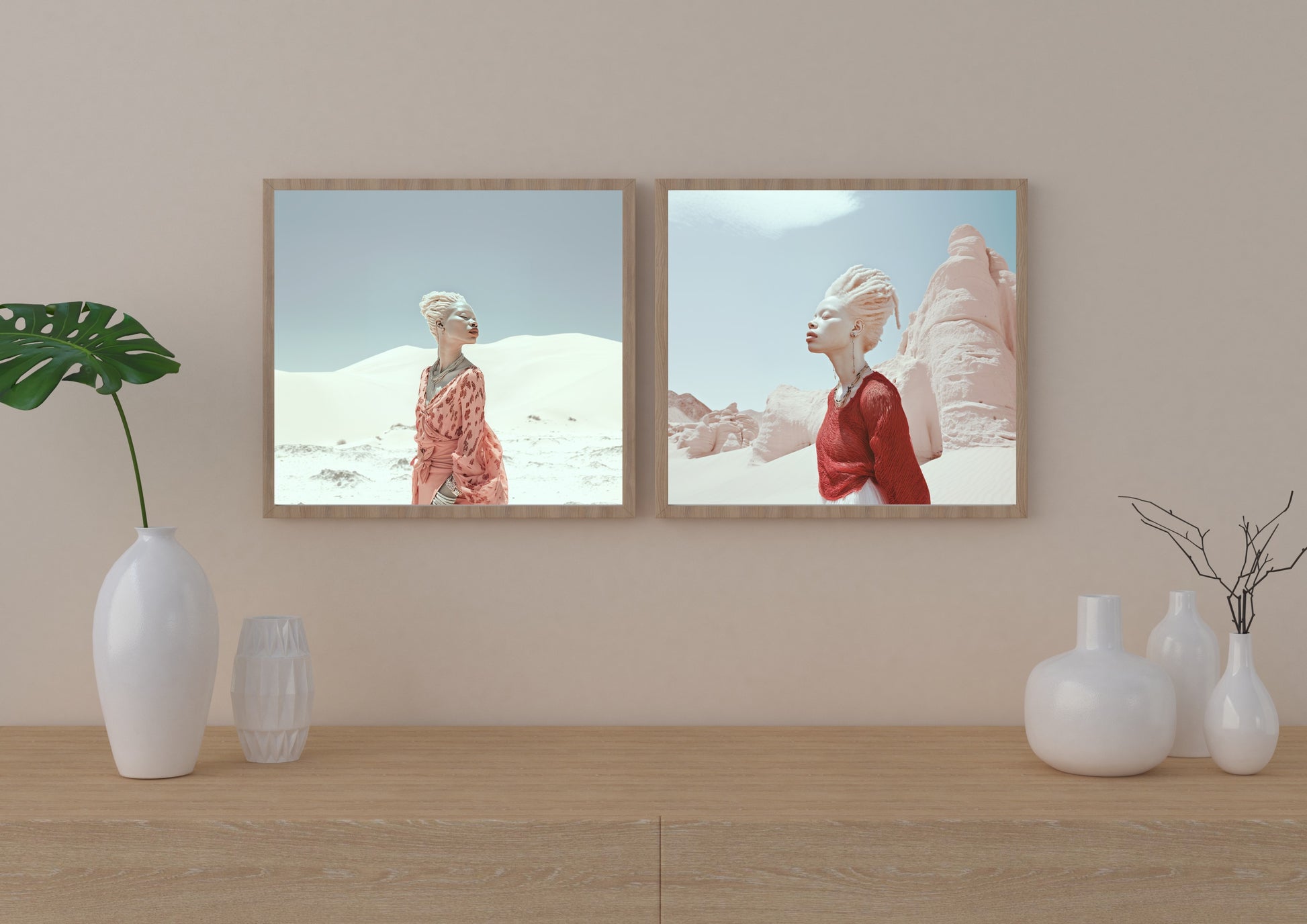 ***¿Te gustan? Llévate estas dos láminas de mujeres africanas albinas en escenarios desérticos de ensueño, con descuento especial.